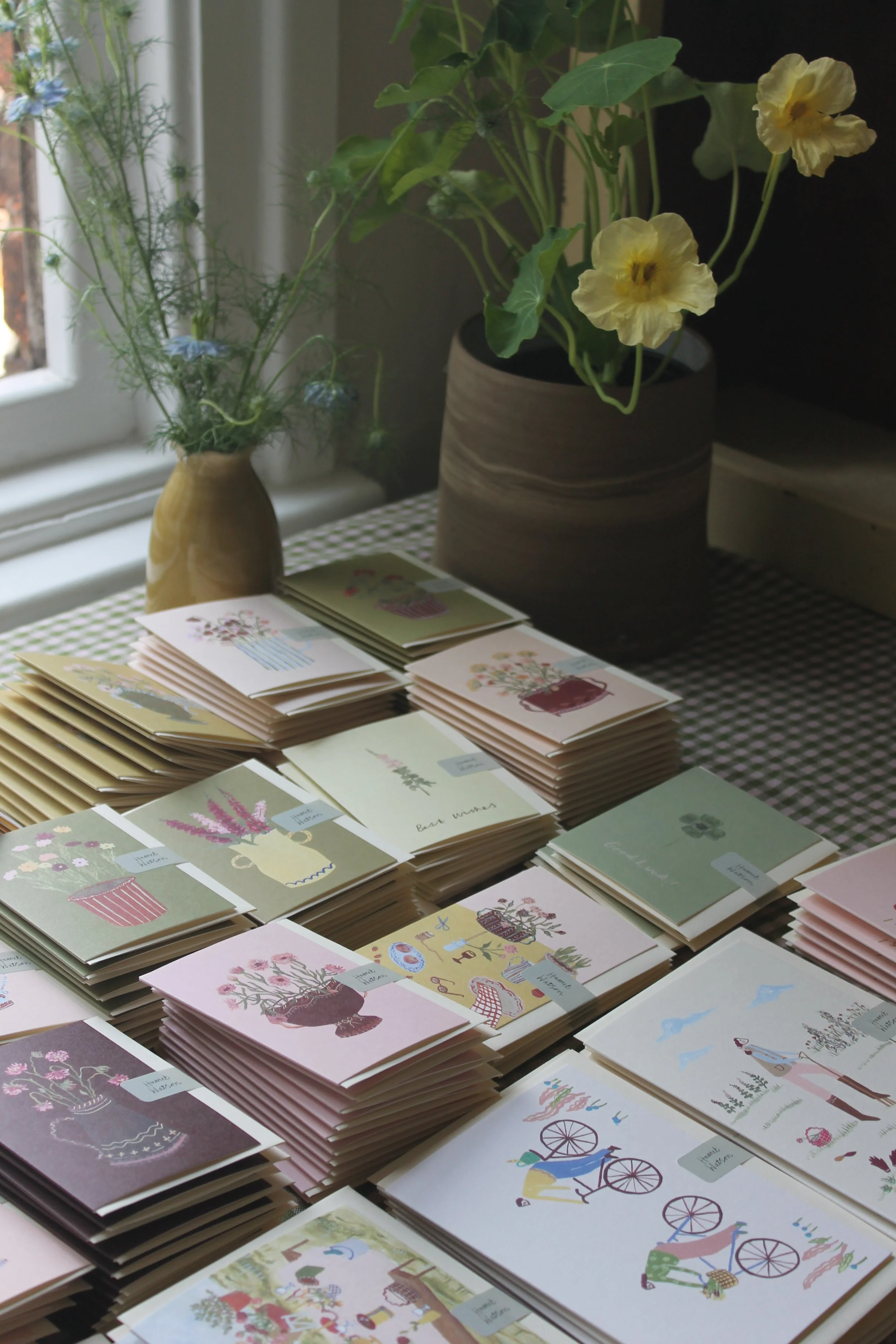 I was incredibly fortunate to grow up in the beautiful Norfolk countryside and my fondness of the outdoors is most apparent throughout my work. My joyful greetings cards, prints and stationary are painted in rich gouache, and printed using beautiful, eco-friendly materials making each one special. I gather inspiration from flowers and rural living. Celebrating everyday activities and objects finding appreciation in simplicity.