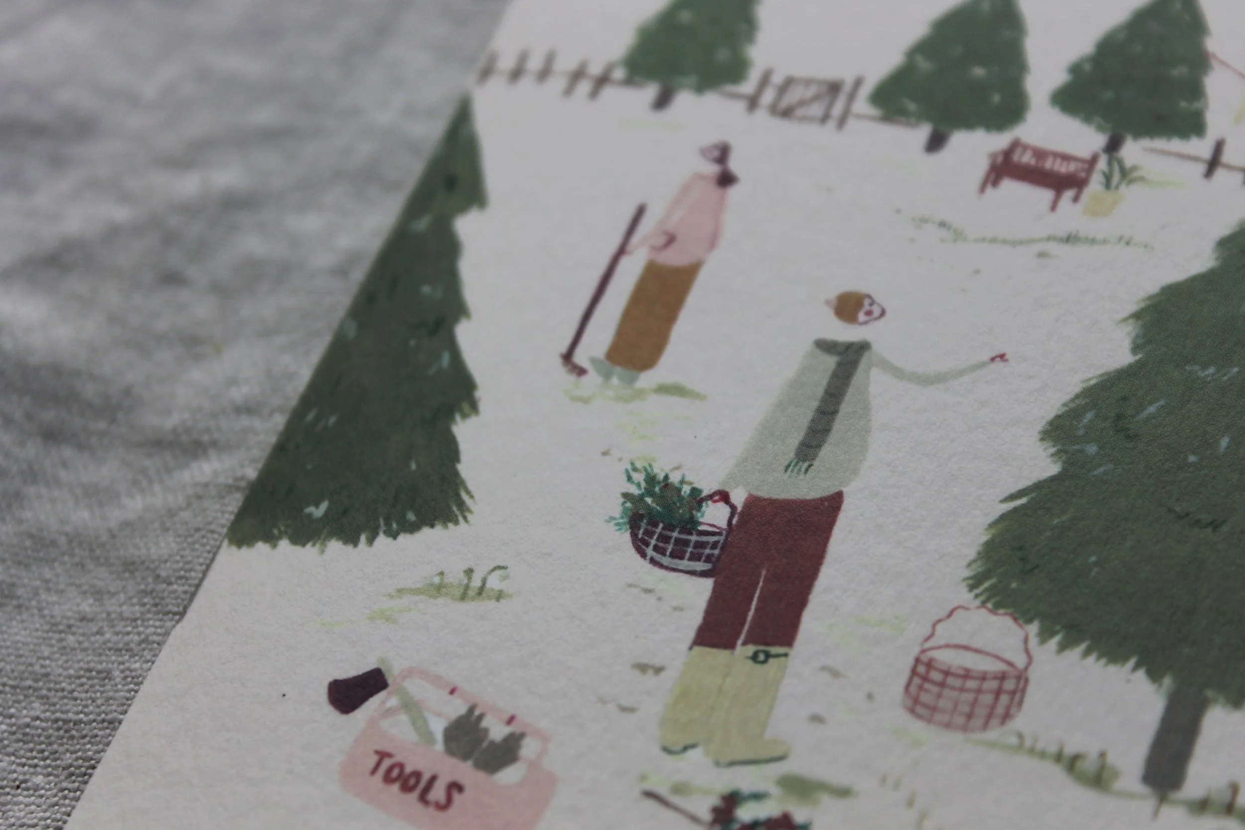 Each and every piece starts as a gouache painting. I pride myself on steadily making changes to become more sustainable as a business. My greetings cards are printed on FSC certified paper using vegan inks, then supplied with a natural envelope and plastic-free packaging.